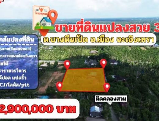 ขายที่ดินแปลงสวย พิกัด ต.บางตีนเป็ด อ.เมือง จ.ฉะเชิงเทรา