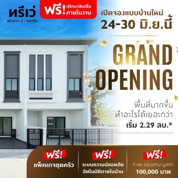 Grand Opening 24-30 มิ.ย.นี้ เปิดจองแบบบ้านใหม่ครั้งแรก จำนวนจำกัด
